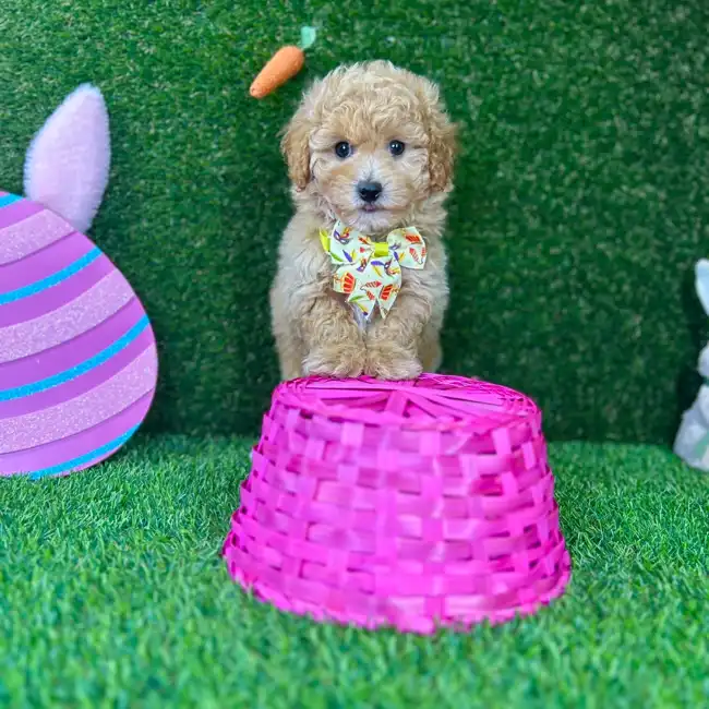I am a Male, Apricot Bichon-Poodle, born on February 17, 2025. I’m up to date on all my vaccinations and deworming, so I’m happy and healthy, ready to find my “furever” family!